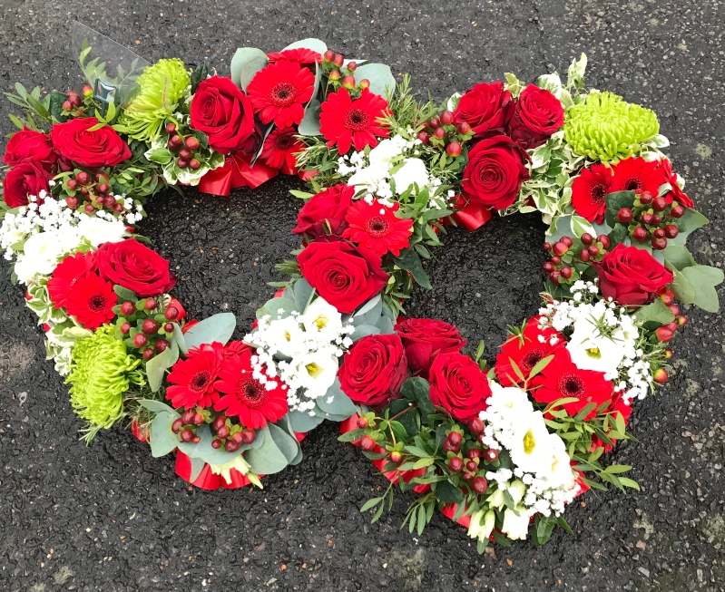 Loose double heart created using flowers of your choice, please contact us to discuss the design.